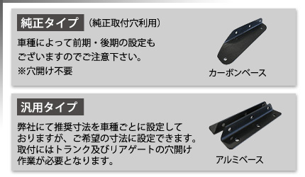 こちらから汎用ベースの寸法をご確認いただきけます。 また車種対応データでは、車種別に弊社が推奨する汎用タイプの脚幅寸法を記載しておりますのでご参照ください。